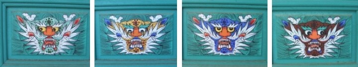 [춘천시 고탄 장안사] 대웅전 꽃살문 아랫부분에 있는 귀면 - 귀면의 시선을 보면, 각기 다 다릅니다
