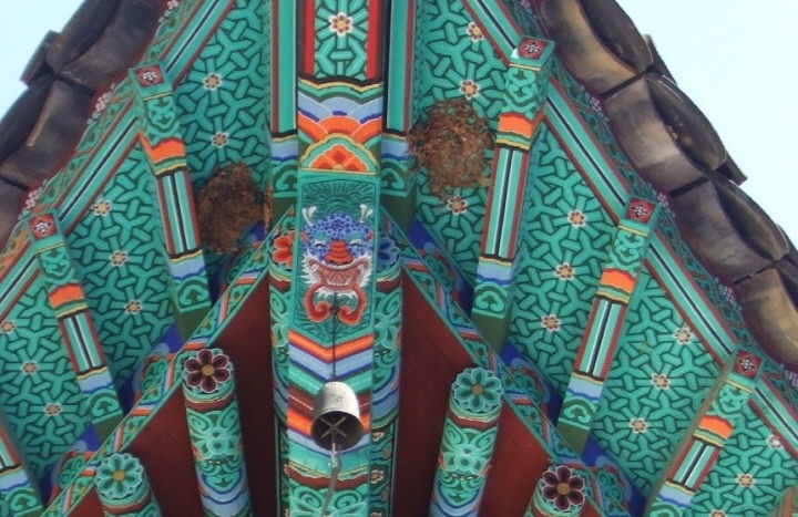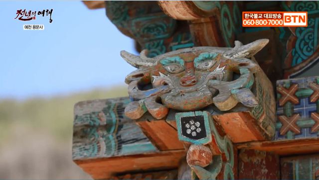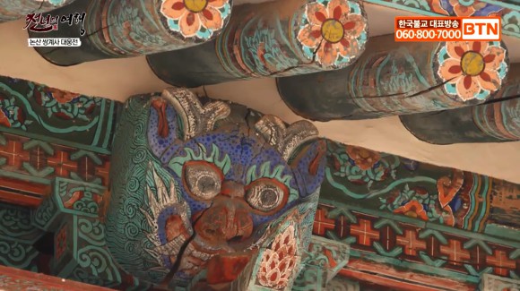 [춘천시 칠전동 부흥사] 대웅전 처마 모퉁이에 있는 귀면 단청