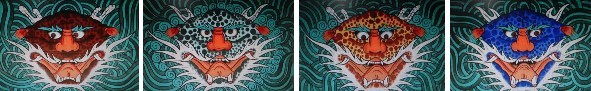 색깔은 방위 - 좌로부터 북(黑),동(靑),남(赤),서(白)