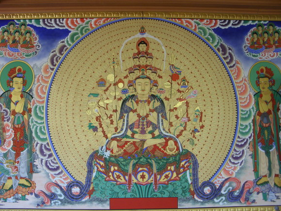 무한히 많은 손과 눈으로 중생을 구제하는 관세음보살. 수많은 팔과 눈을 가지고 있음