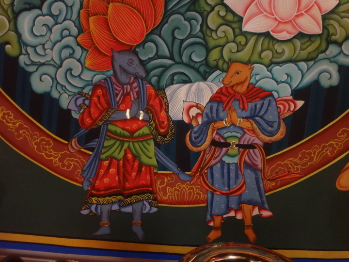 자세히 보니 지장보살님 연화좌 앞에 작은 그림으로 그려진 두 존재(↑)가 있다. 무엇일까?
