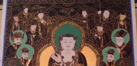 일전에 사명산 흥덕사 대웅전에서 이러한 지장탱화(↓)를 보았다.