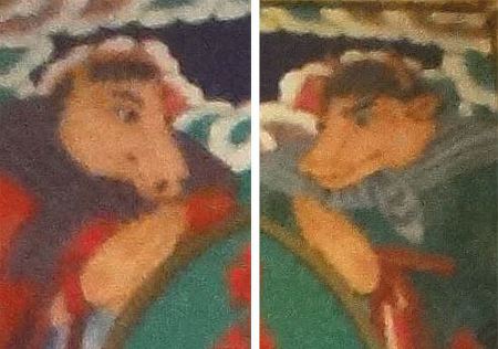 그 부분을 크게 보면 이런 모양(↑)인데, 아마도 아비지옥 문앞에서 지옥중생을 몰아넣는다는 우두옥졸과 마두옥졸인 것 같은데..