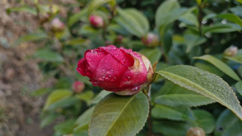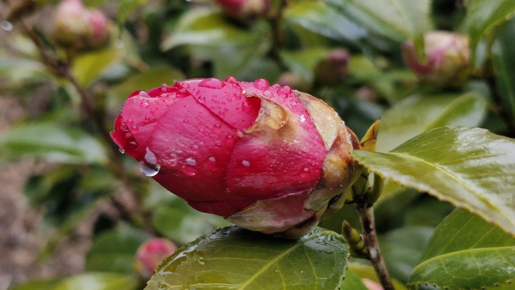 동백이 피기 시작할 무렵, 봄을 재촉하는 비가 내렸습니다.