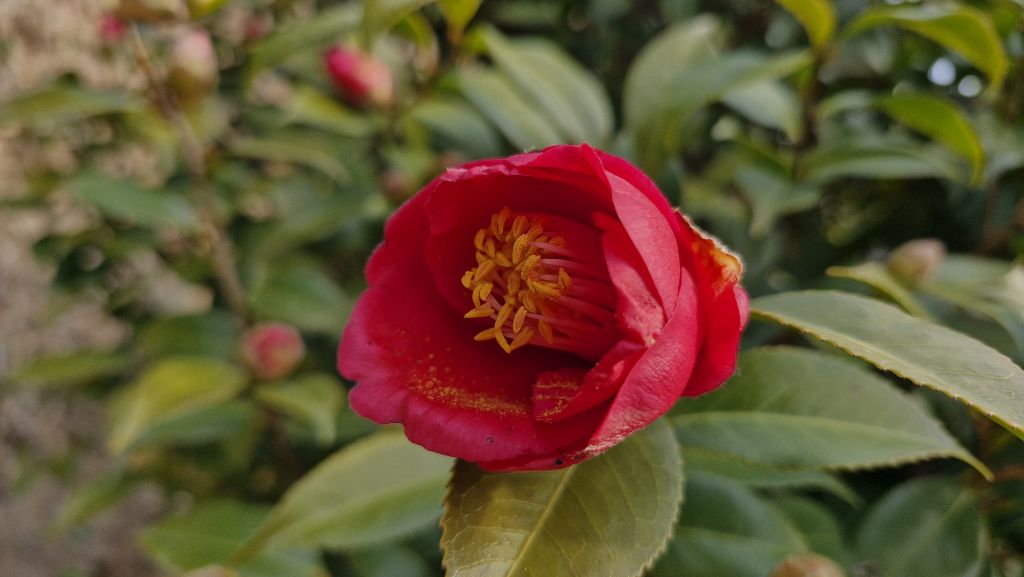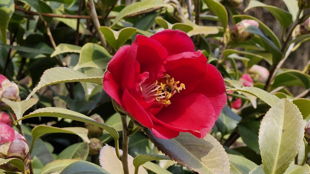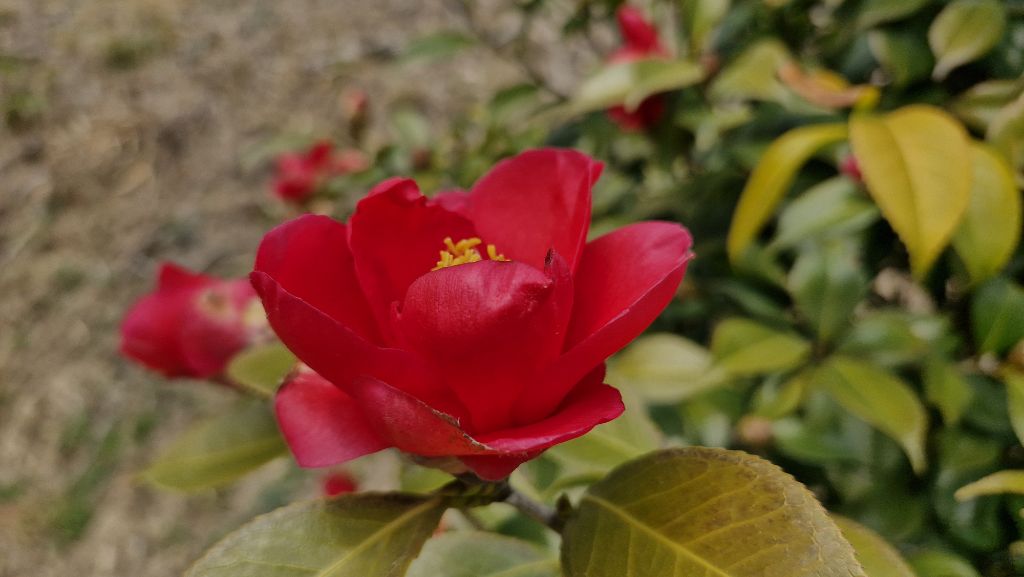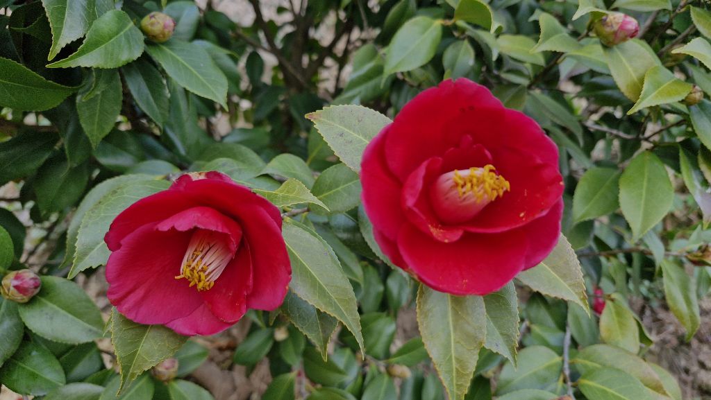 기온이 올라가면서 동백꽃이 활짝 피어나고 있습니다.