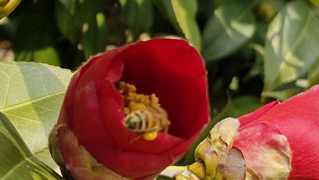 꽃수술 속에도 벌이 들어 있습니다.