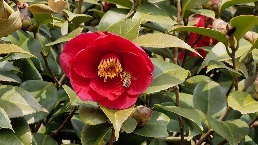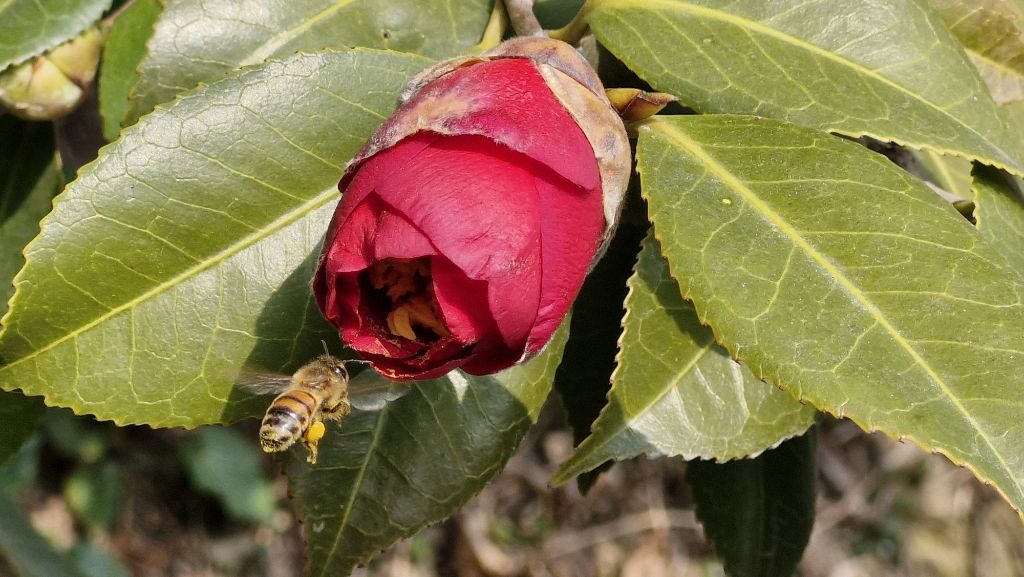꽃이 활짝 피기전이라 벌이 어렵게 꽃속으로 들어가더군요.