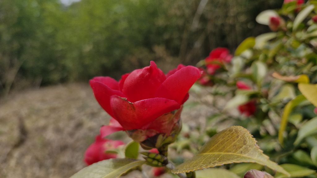 강렬한 빨간색의 꽃이 자주 시선을 붙잡습니다.