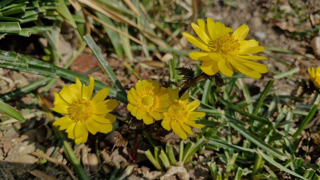 복수초는 이제 막바지 꽃들을 피워내고 있습니다.