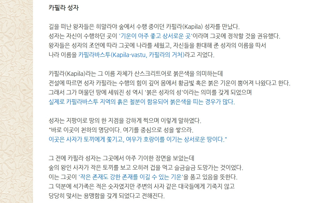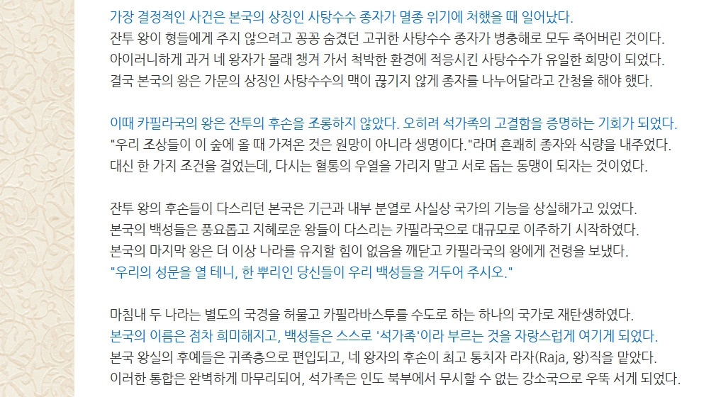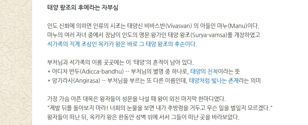 부처님의 나라, 태양의 후예.. 카필라바스투 석가족 전설 작성자햇빛엽서|작성시간26.03.31|조회수6 목록 댓글 0 글자크기 작게가 글자크기 크게가 * 그림을 클릭하면 더 많이 볼 수 있습니다 / 언제나 햇빛엽서 * 다음검색 현재 게시글 추가 기능 열기 북마크 공유하기 신고 센터로 신고 댓글 댓글 0 댓글쓰기 댓글 리스트