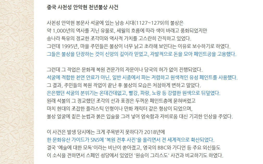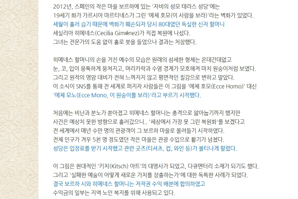 원숭이 그리스도 벽화 사건.. 그 실패와 반전 작성자햇빛엽서|작성시간26.04.04|조회수10 목록 댓글 0 글자크기 작게가 글자크기 크게가 * 그림을 클릭하면 더 많이 볼 수 있습니다 / 언제나 햇빛엽서 * 다음검색 현재 게시글 추가 기능 열기 북마크 공유하기 신고 센터로 신고 댓글 댓글 0 댓글쓰기 댓글 리스트