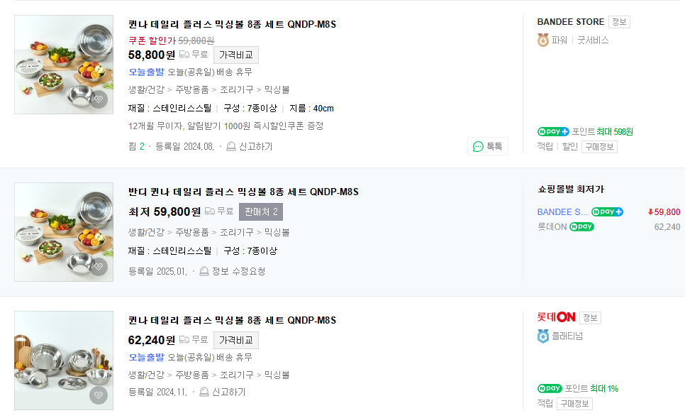주방에 믹싱볼은 이거 한세트면 됩니다 ^^
