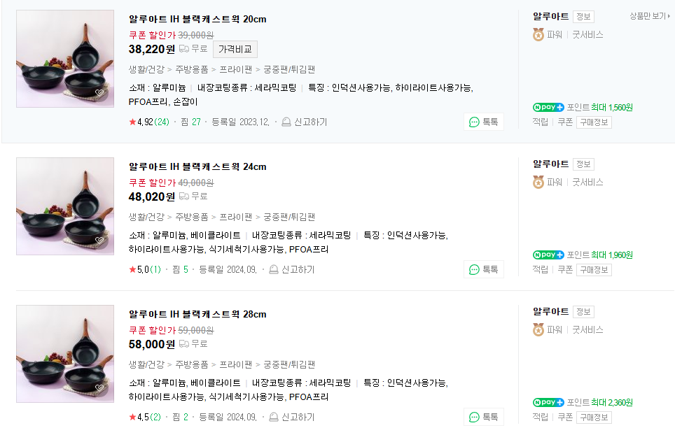 웍,궁중팬/국내 3대 백화점 매장에서도 판매중이며 저도 사용중인데 정말 좋아요 강추,다양한 열원에서 사용가능{웍,궁중팬} 세가지 사이즈
