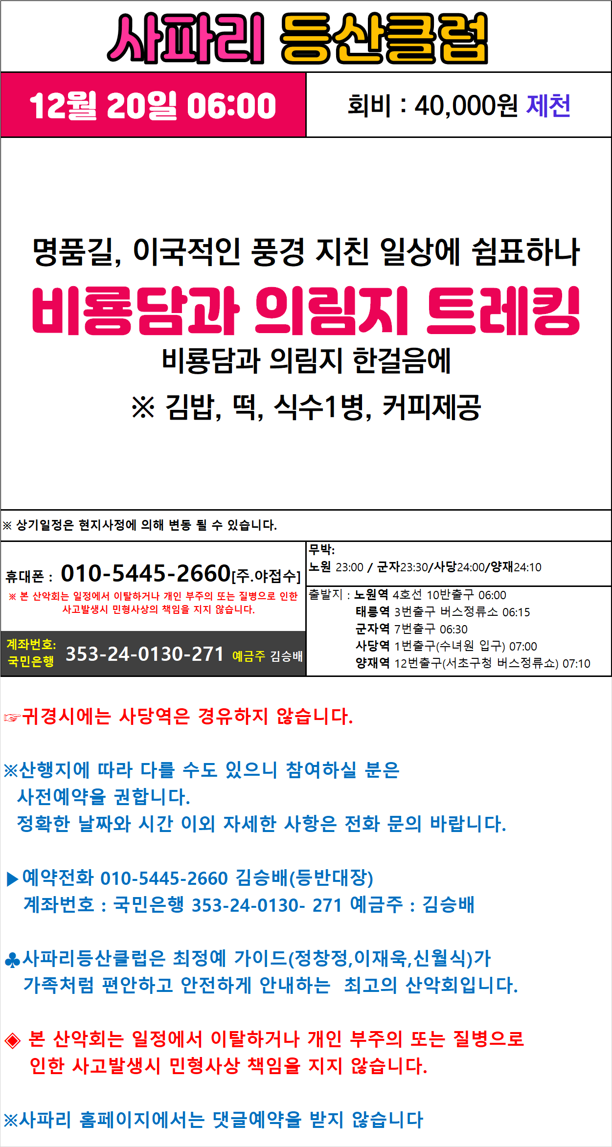 12월 20일 06:00 비룡담과 의림지 트레킹 작성자그루터기|작성시간25.12.05|조회수138 목록 댓글 0 글자크기 작게가 글자크기 크게가 다음검색 현재 게시글 추가 기능 열기 북마크 신고 센터로 신고 댓글 댓글 0 댓글쓰기 답글쓰기 댓글 리스트