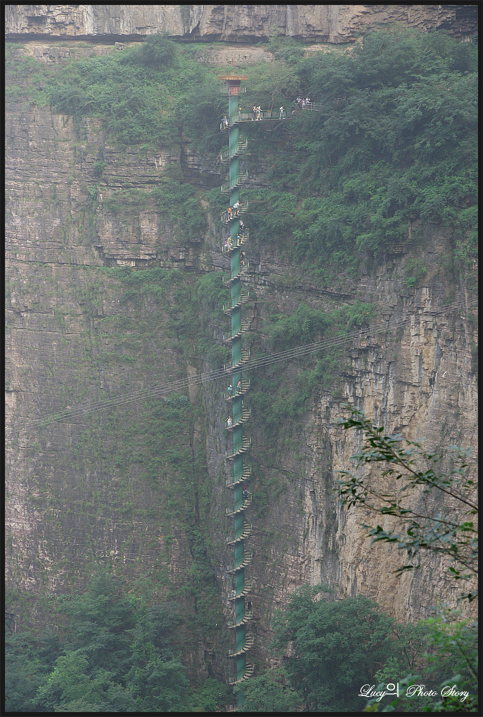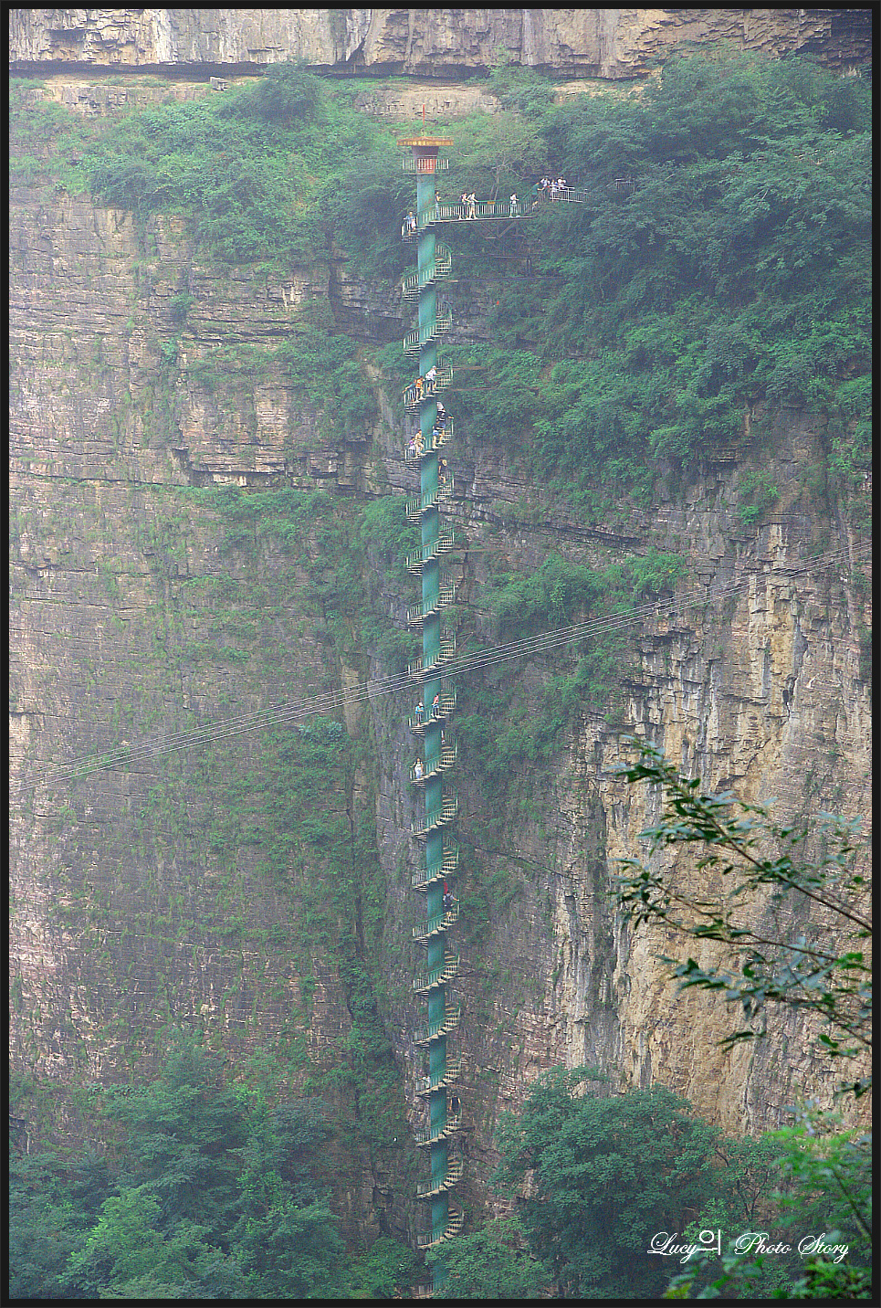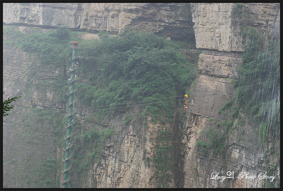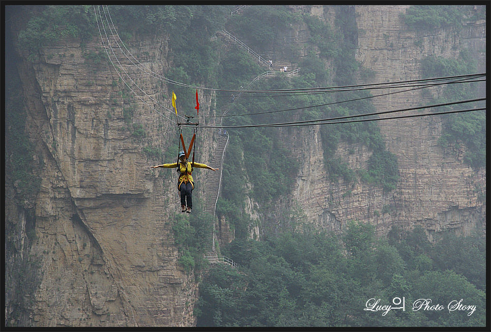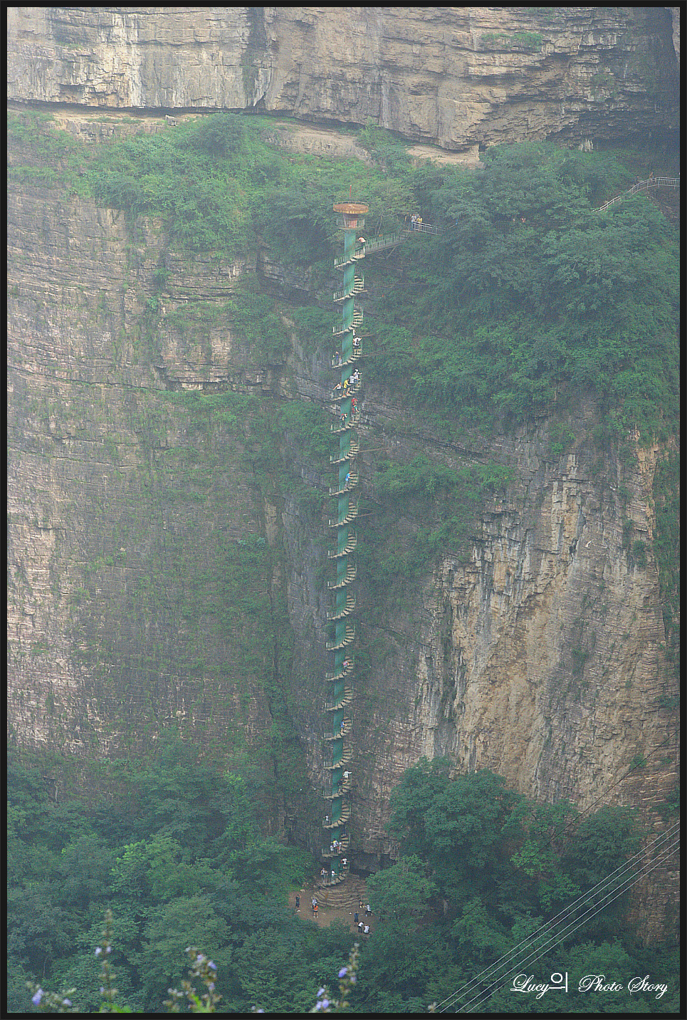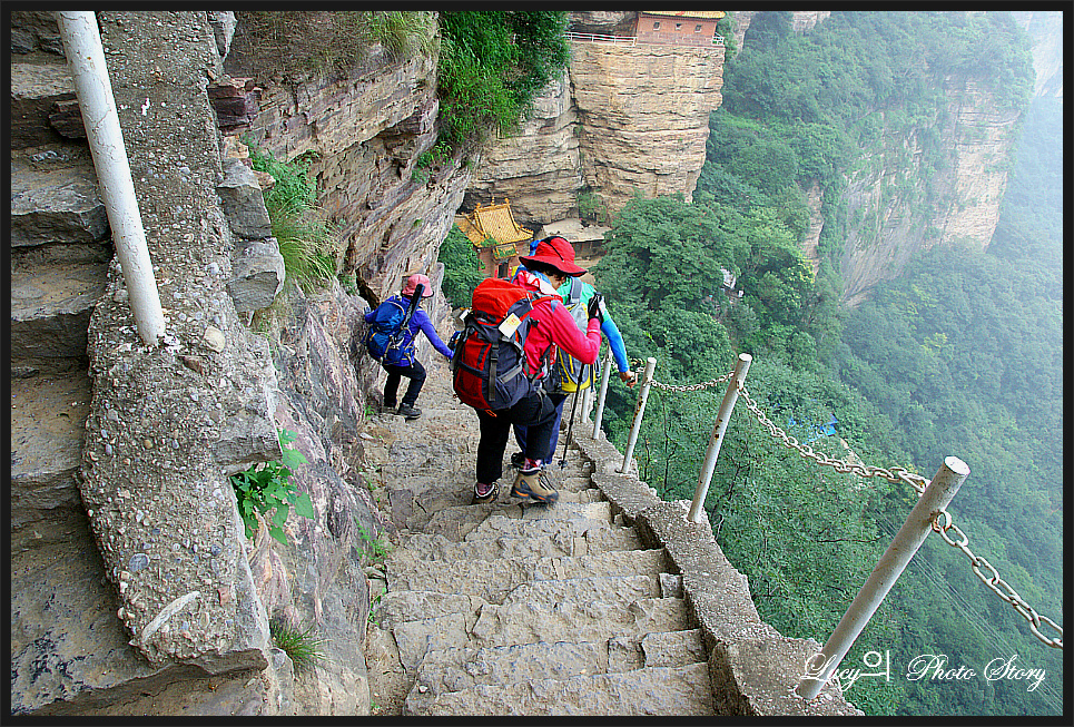 허공에 와이어로 묶어서 다니는길,,,절벽에 수직으로 계단만들어