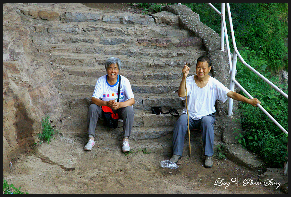 바위벽의 계단도 내리꼿듯 수직이네요...