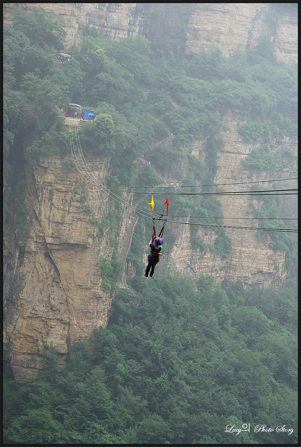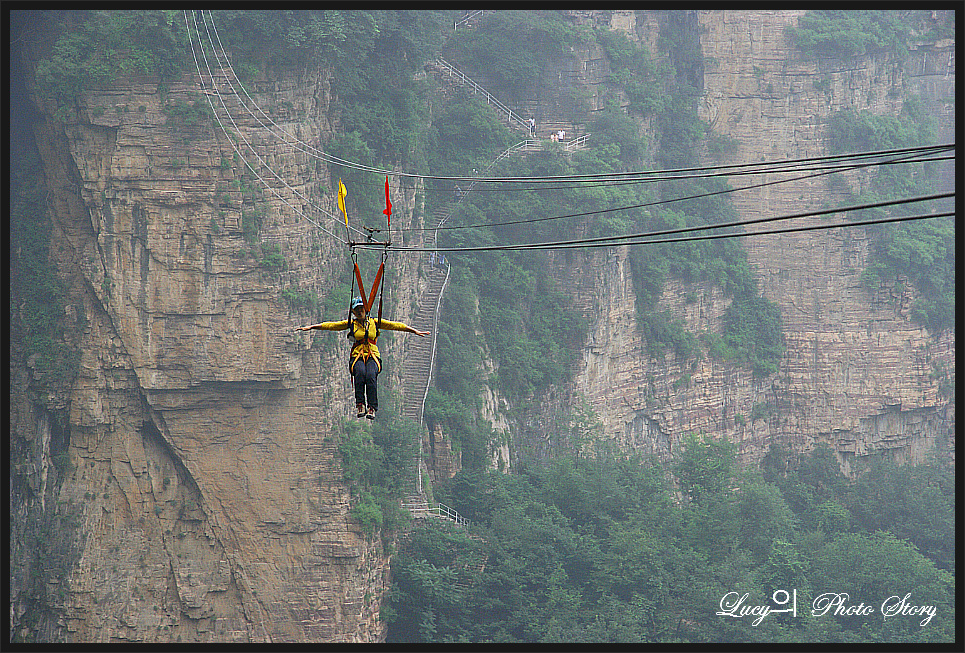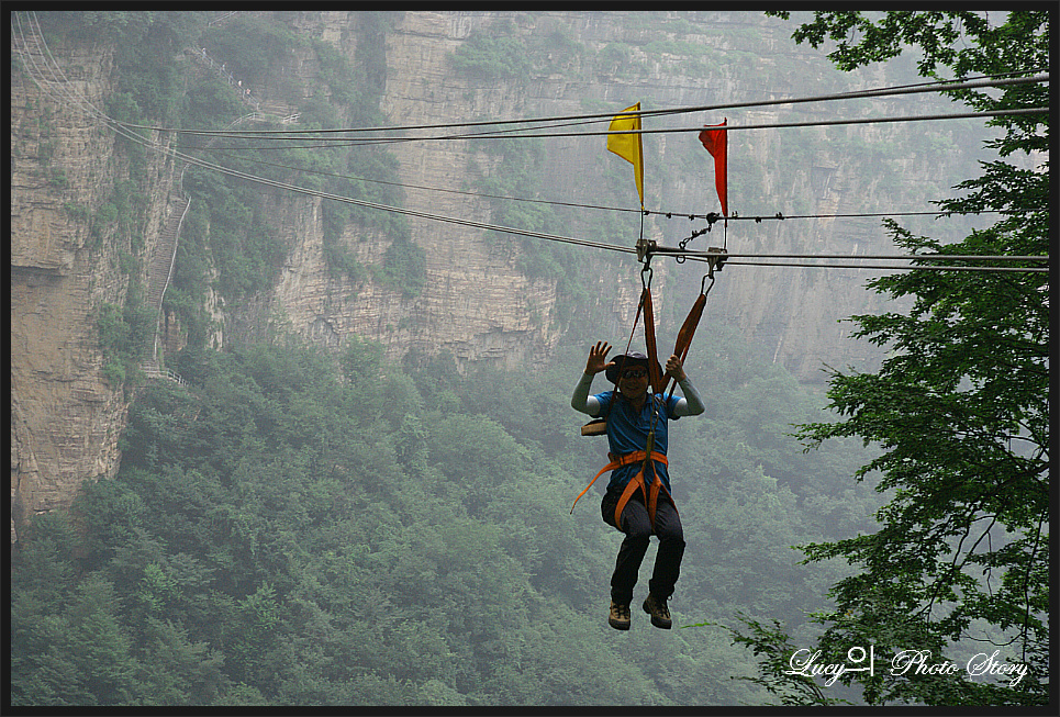 허공의 와이어길로 줄타고 휘~휘~바람처럼 날아가는 사람들,,