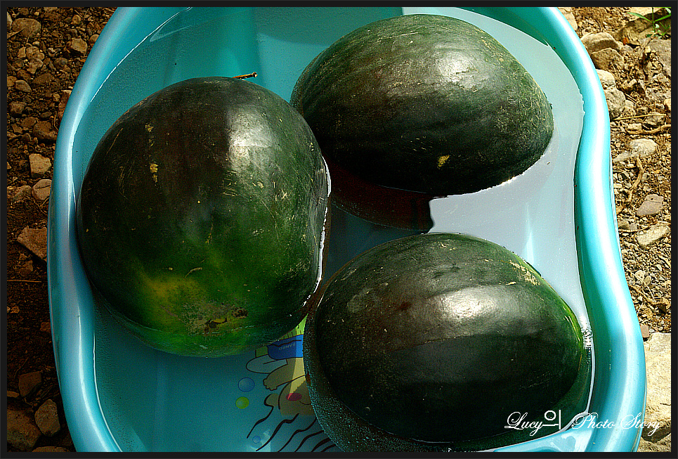 물에 채워놓은것이 이상해서 물었더니 수박이라고 하네요~