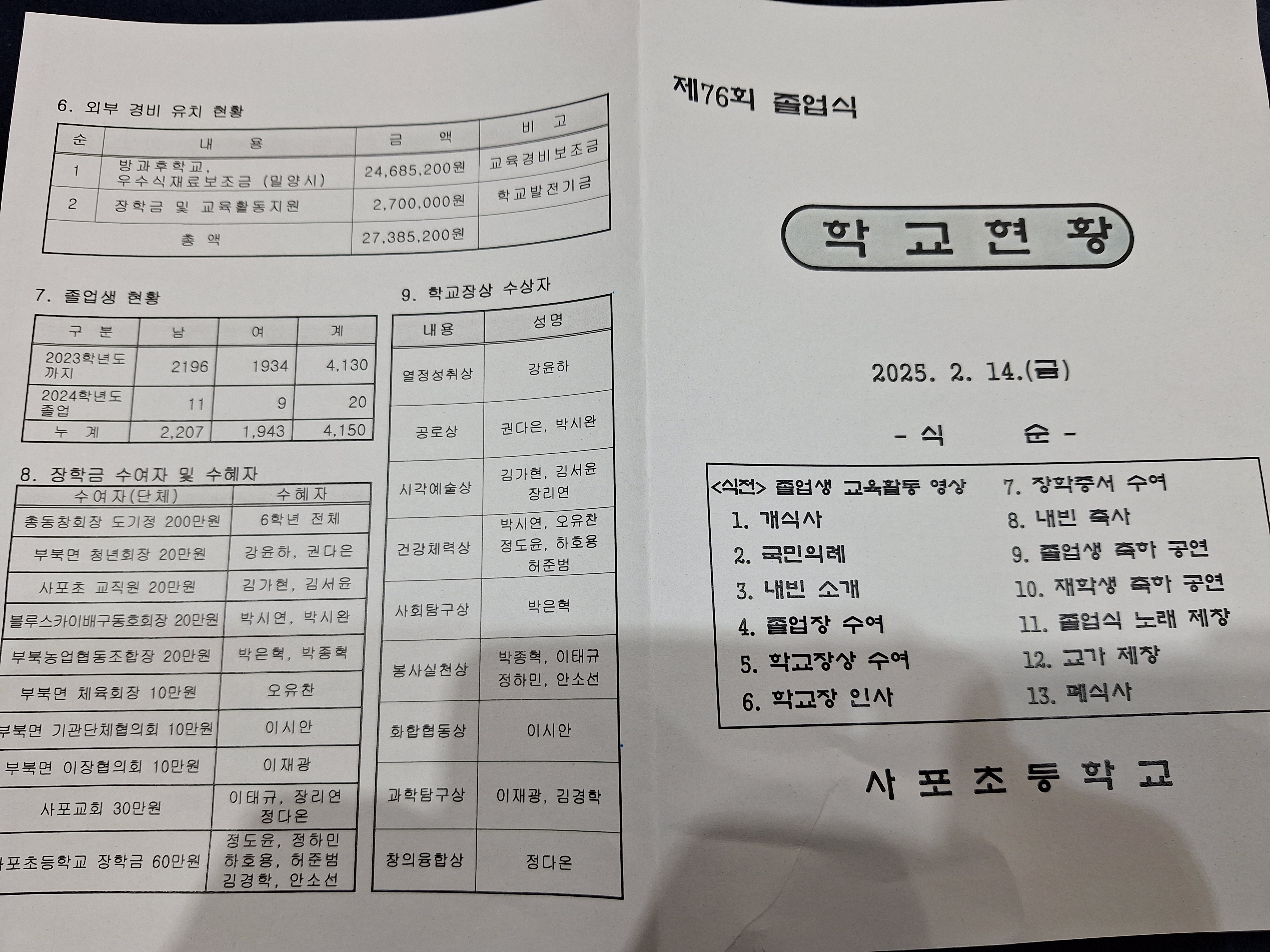 2025년 모교졸업식 참석 작성자32회 배태윤|작성시간25.03.09|조회수37 목록 댓글 0 글자크기 작게가 글자크기 크게가 2025년 2월14일 모교졸업식 도기정회장님과사무국참석 하였습니다.졸업식에는 도기정 회장님께서 사비로 발전기금 형식으로 200만원을 졸업생 1명당 10만원 장하금 지급 하였습니다. 다음검색 현재 게시글 추가 기능 열기 북마크 공유하기 신고 센터로 신고 댓글 댓글 0 댓글쓰기 답글쓰기 댓글 리스트