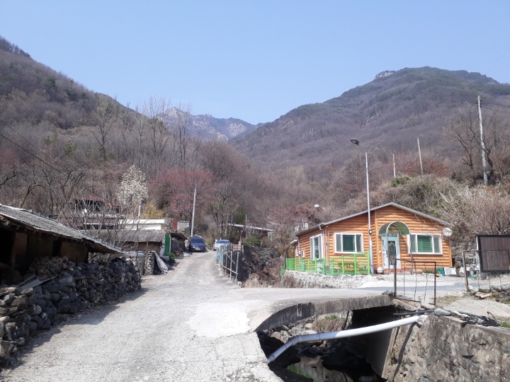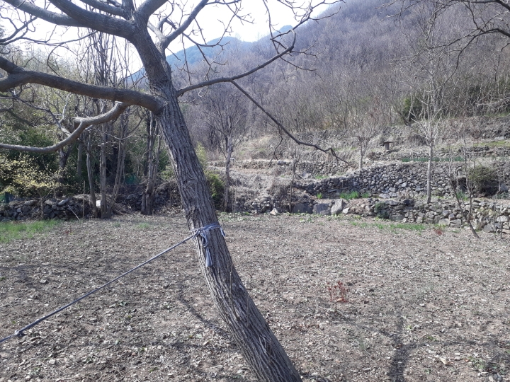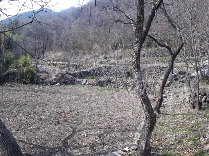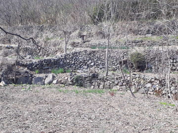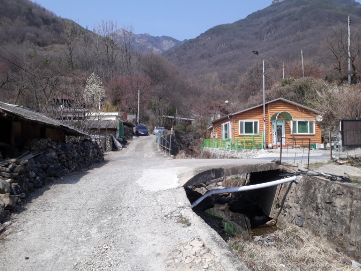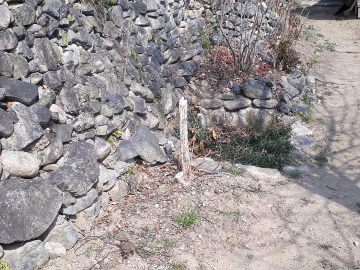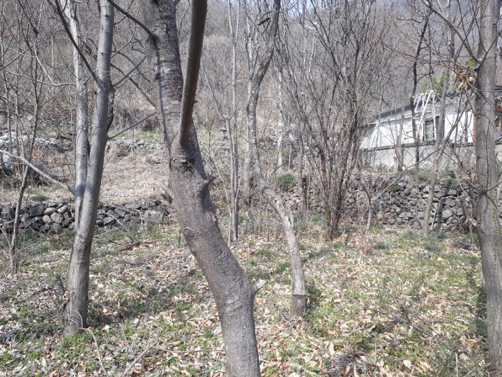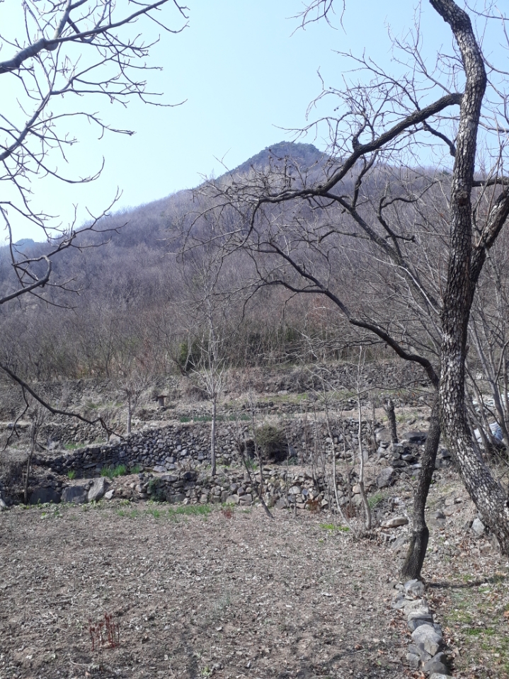 마을 뒷쪽에는 산돌로 축대를 쌓은 집터가 열대여섯집이 있었는데 다 철거되고 축대로 구분된 집터가 밭으로 변해 있었다