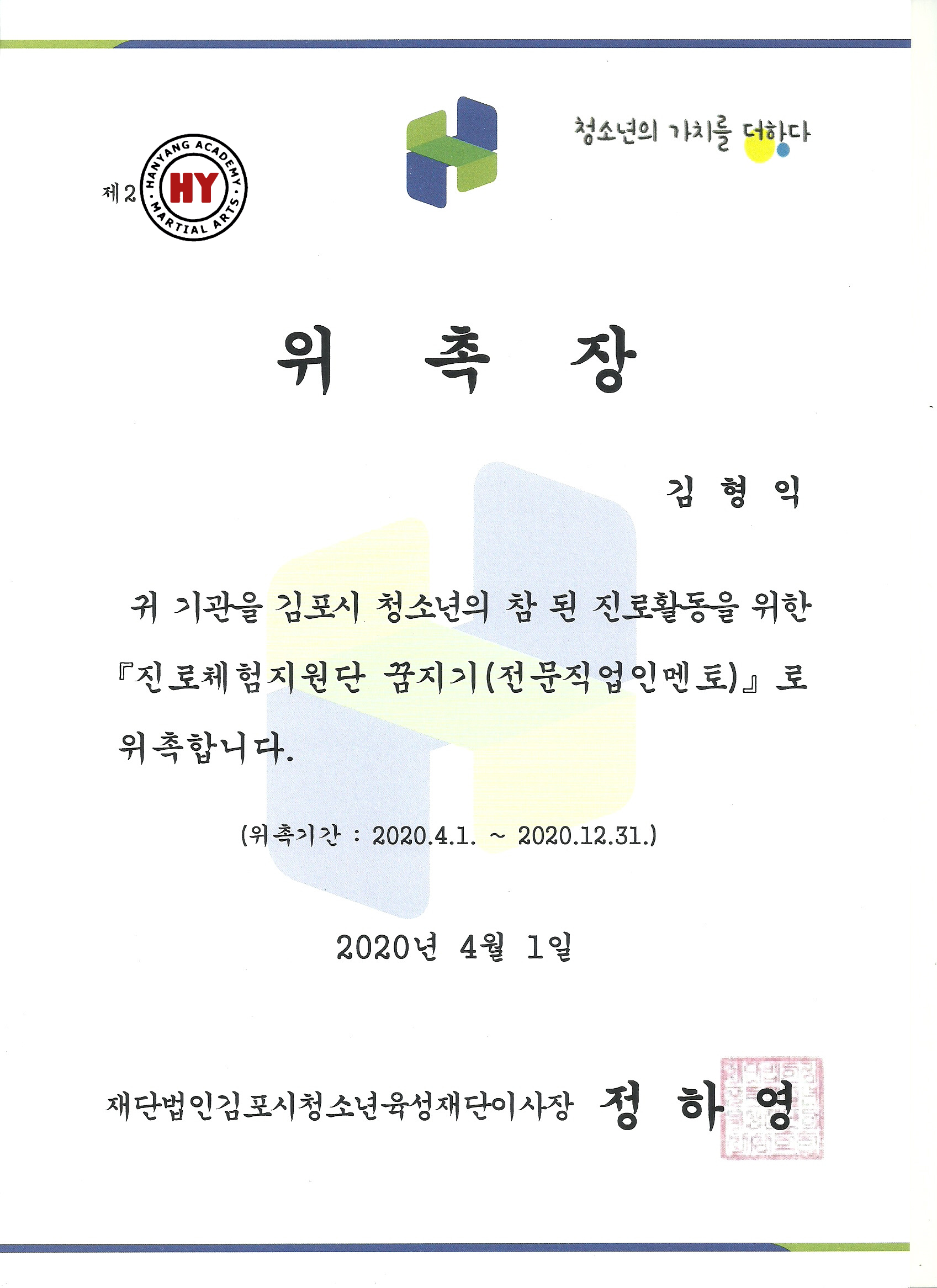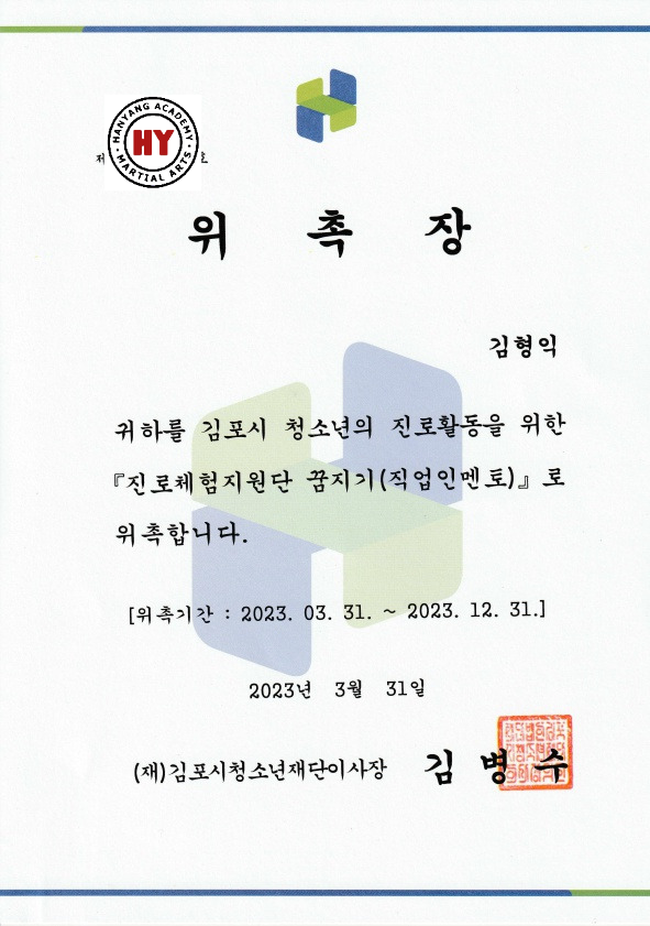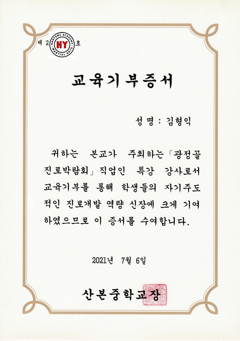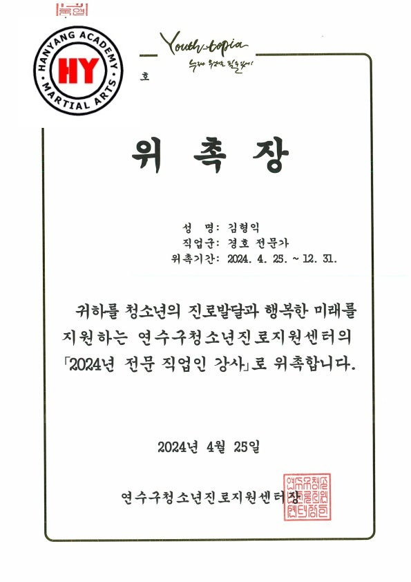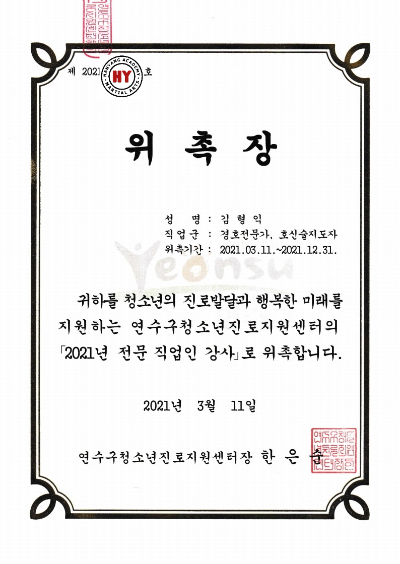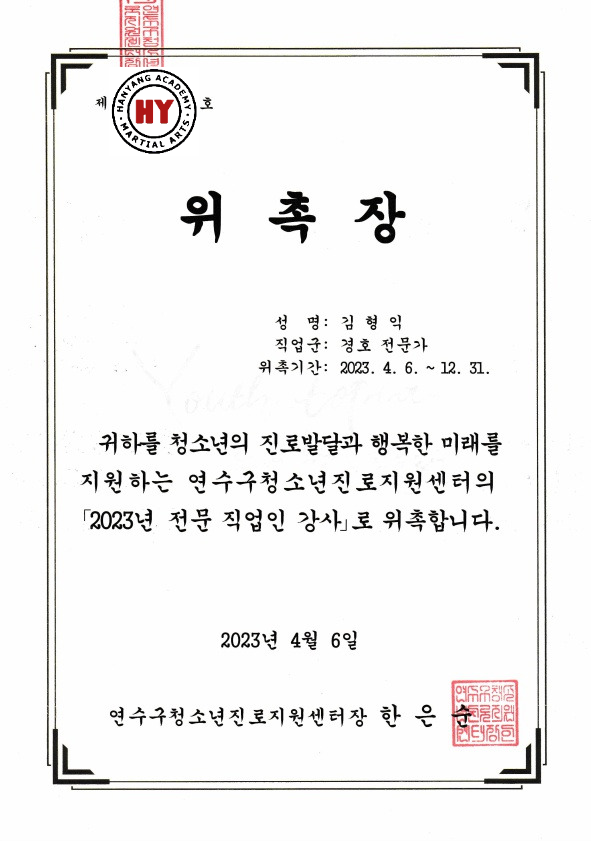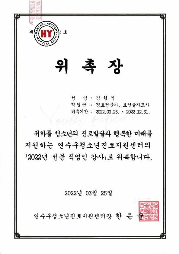 2020~2024 진로교육 위촉, 김형익 원장 한양유도관 (경호원 스포츠지도사 호신술지도자 진로체험) K-SDA호신술