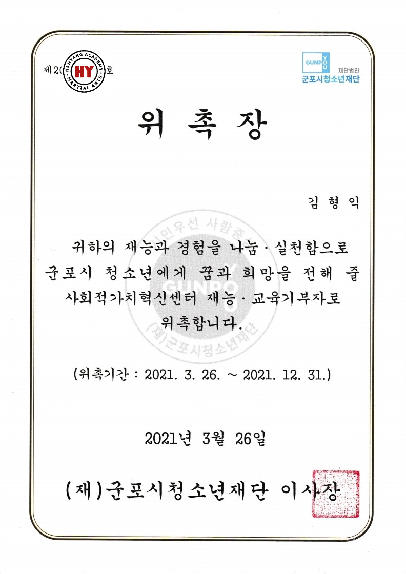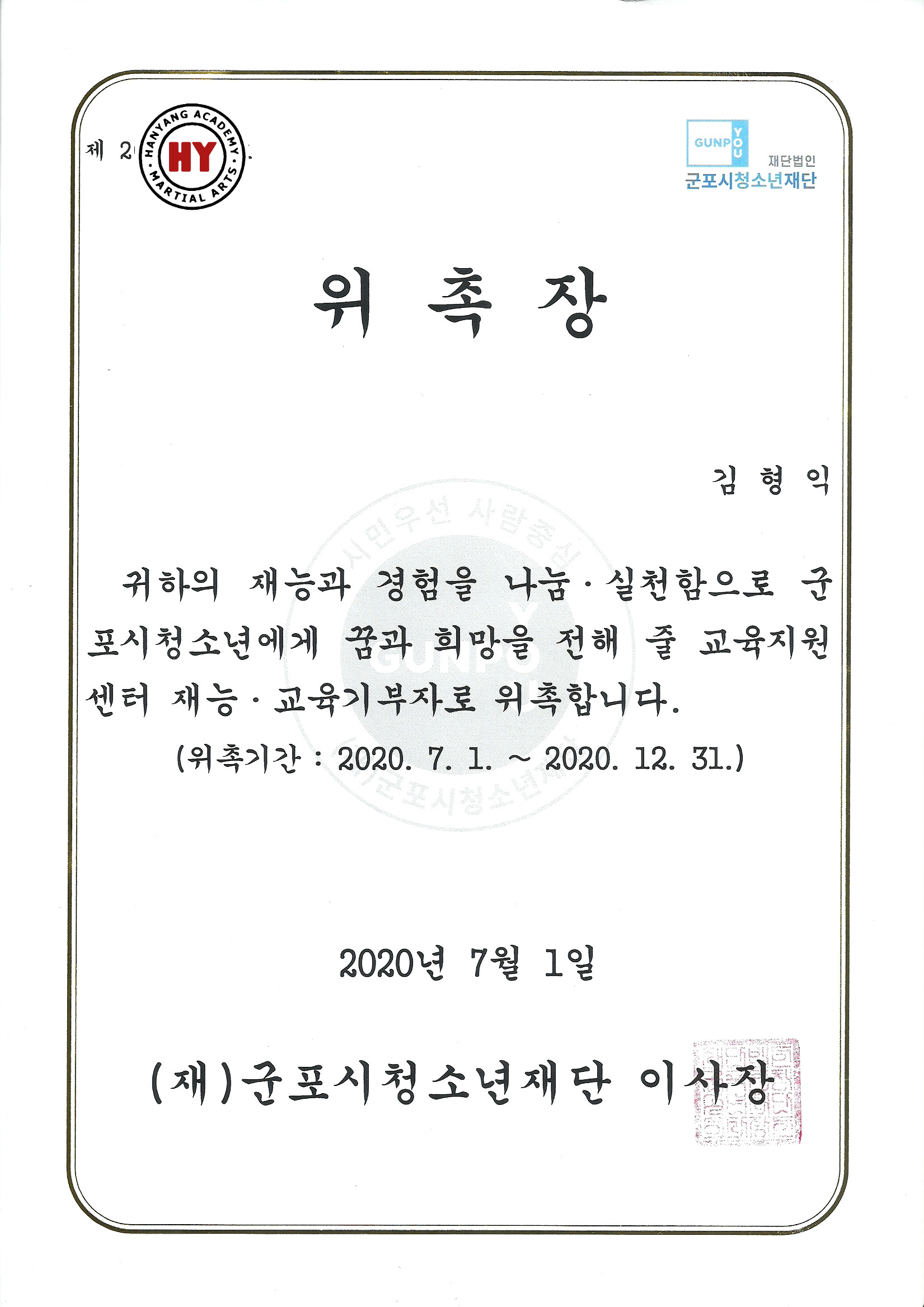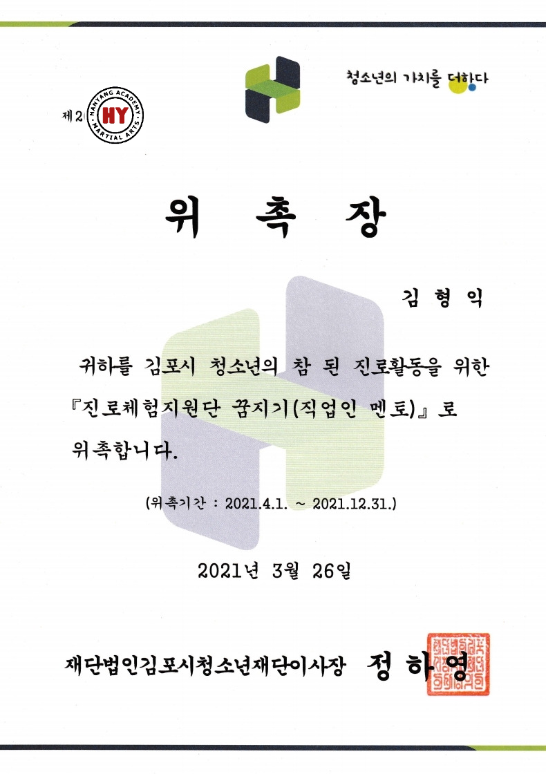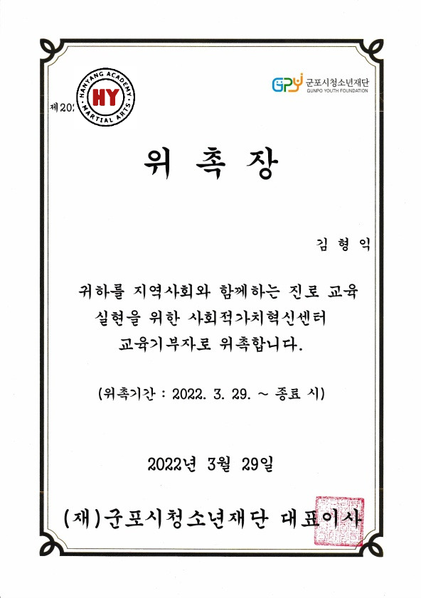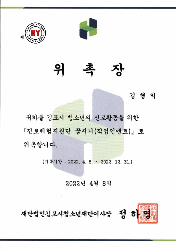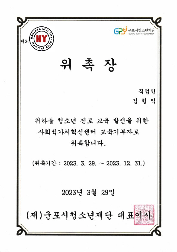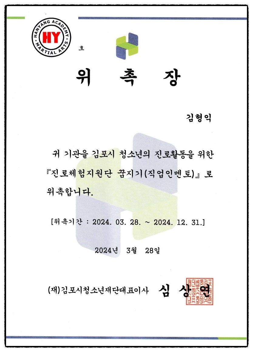2020~2024 진로교육 위촉, 김형익 원장 한양유도관 (경호원 스포츠지도사 호신술지도자 진로체험) K-SDA호신술