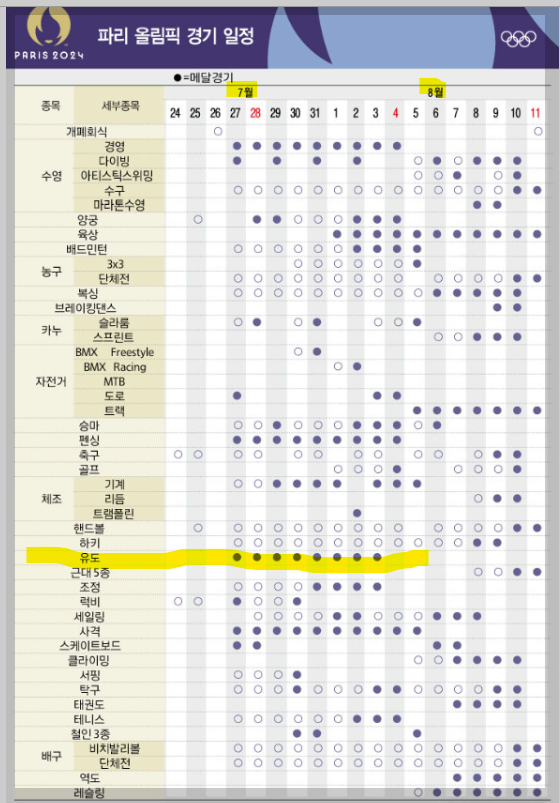 2024 파리 올림픽 유도 경기 일정 (2024. 7. 27.~8. 3.)