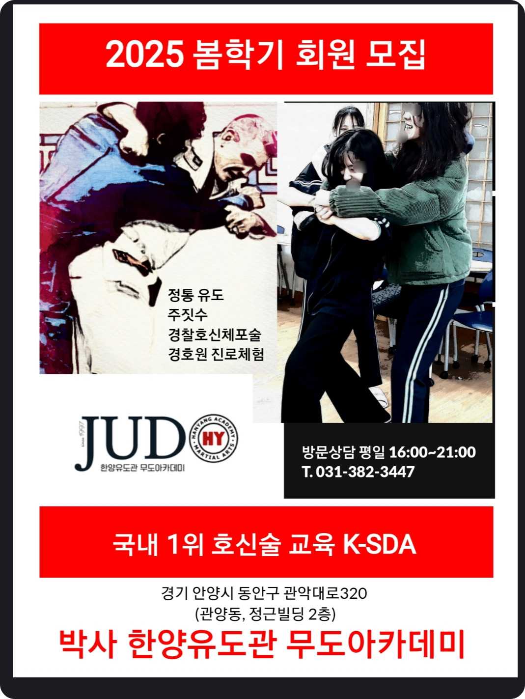 2025년 봄학기 회원 모집 한양유도관 (어린이 청소년 성인 노인 유도) 안양 평촌 인덕원 범계 동편마을 비산동 과천 의왕