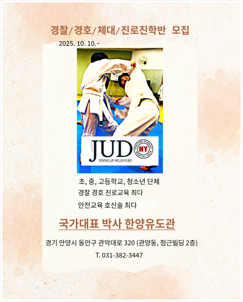 경찰/ 경호/ 체대/ 진로진학반 회원 모집 한양유도관 (안양 유도 단증 평촌 인덕원 범계 동편마을 비산동 과천 의왕) 체대입시 선수반
