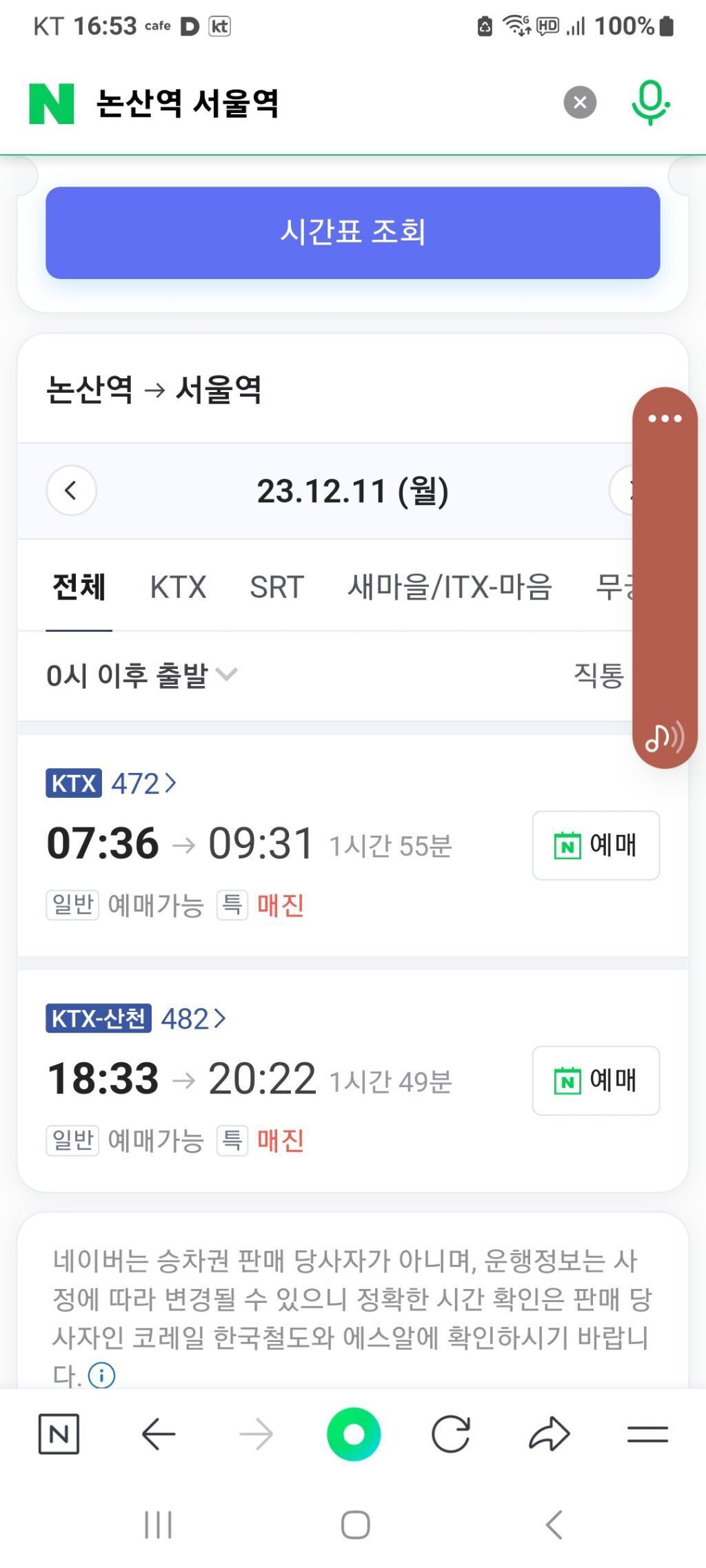 그날 명절지나고 바로 평일날인 아침 케이티엑스열차표를 끊으려고 하닥
