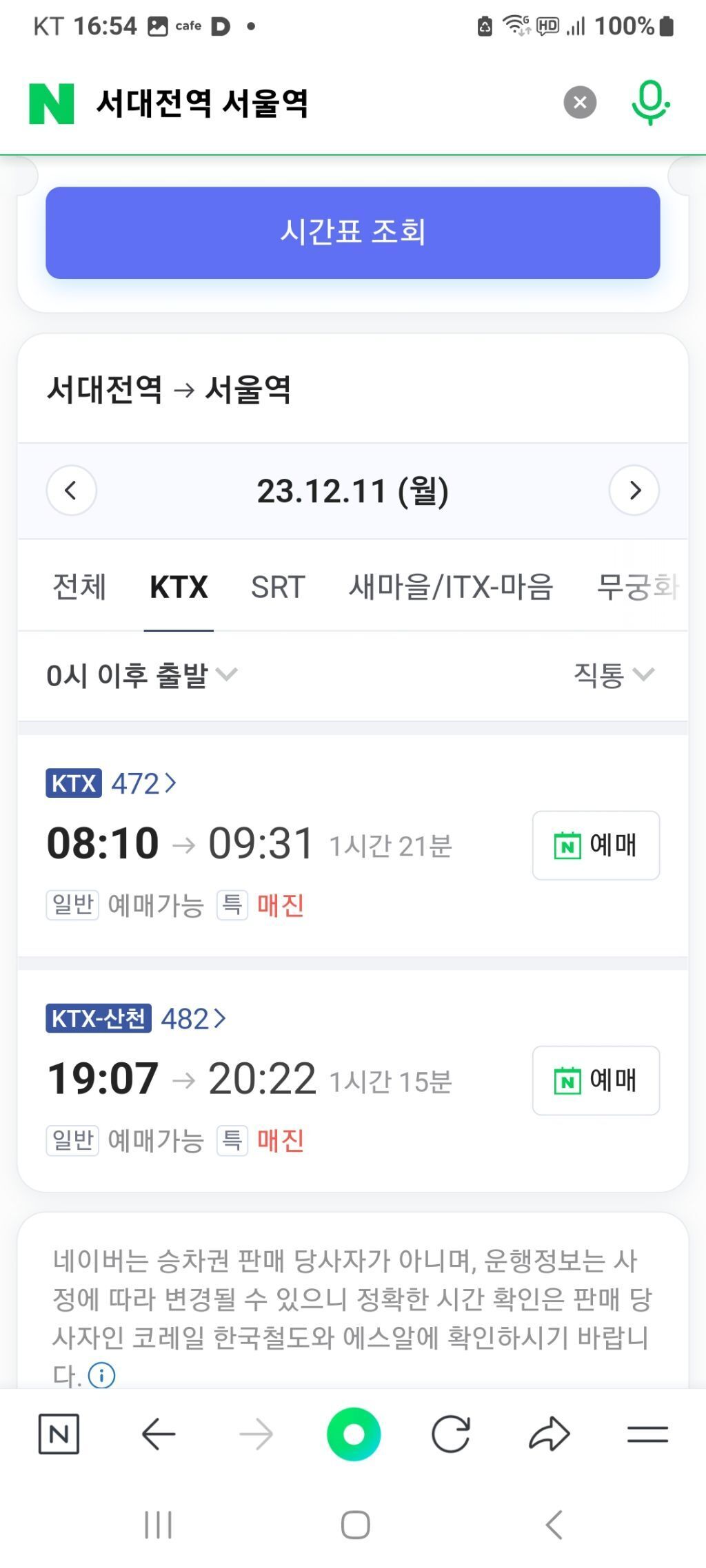 먼저 첫번째 사진은 서대전역에서 서울역까지 운행하는