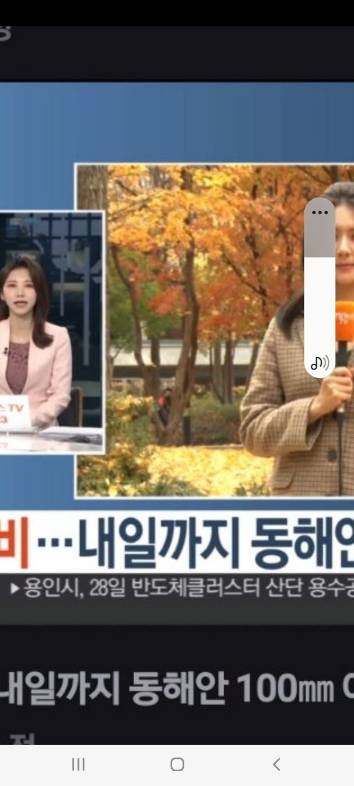 강지수 기상캐스터가 마이크로 붙잡고 인터뷰하는 것과