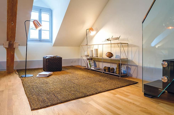 실내 소음 중에 가장 빈도가 잦은 것은 사람이 지나다니는 소리일 것이다. 특히 아이들이 있는 집은 발걸음 소리로 인한 소음이 큰데, 활동량이 많은 아이들을 무조건 통제하기보다는 정해진 장소에서 정해진 시간에 놀도록 하는 것이 좋다. 이때 필요한 것이 카펫이나 조립식 매트이다. 러그, 카펫, 매트 등을 깔면 약간의 공기층이 생성되어 바닥에 직접적으로 진동이 전해지지 않아 소음을 완화할 수 있다. 사진처럼 거실에 러그를 깔면 시각적으로도 아늑한 분위기를 조성하고 생활 소음도 줄여 더 평온한 실내 환경을 만들 수 있다.