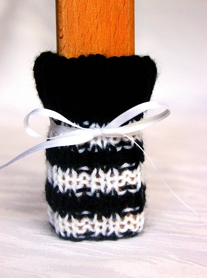 생활 소음을 감소시키기 위한 여러 가지 작은 장치들이 시중에 나와있으니 이용해보자. 문이 크게 닫히는 소리는 경첩이나 도어가드를 설치하고, 도어 완충기로 속도를 조절하는 방법으로 완화시킬 수 있다. 또, 평소 우리가 다른 용도로 사용하는 소품들이 소음 방지에 도움을 주기도 한다. 예를 들어 밑창이 3센티미터 정도 되는 도톰한 실내용 슬리퍼를 착용하면 발걸음 소음을 줄이는 효과가 있다. 가구가 바닥에 끌리는 경우에도 날카로운 소음이 쉽게 발생한다. 이를 방지하기 위해 바닥과 접하는 면에 패드를 부착하는 것이 좋다. 의자 다리에 씌울 수 있는 양말은 최근 생활용품점에서 사이즈별로 쉽게 구할 수 있고, 사진처럼 뜨개질로 만들면 포근한 느낌의 인테리어 포인트로 활용할 수도 있다.