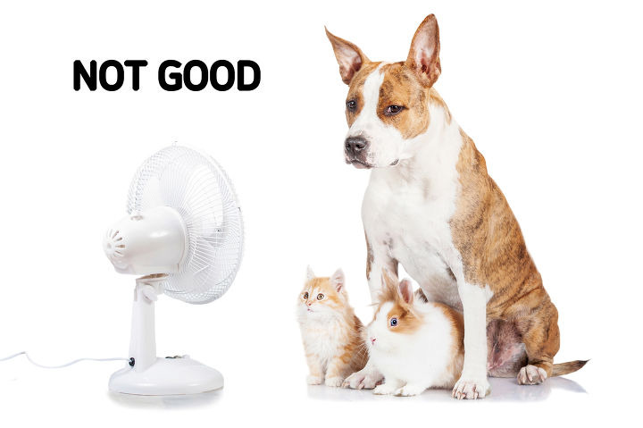 담을 흘렸을 때 바람으로 수분을 증발시켜 피부 온도를 내리는 선풍기는 땀샘이 발바닥에만 있는 강아지에게는 크게 시원하게 느껴지지 않아요. 실제로 강아지를 위해 하루 종일 선풍기를 켜두고 외출했다가 불이 난 사례도 있으니 그보다는 에어컨, 쿨 매트 등으로 실내 온도나 체온 자체를 내리는 것이 좋아요.