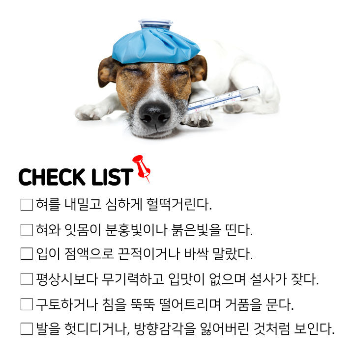 위와 같은 증상을 보인다면 즉시 체온을 낮춰주어야 해요. 시원한 곳에서 찬물에 적신 수건, 에어컨 등을 이용해 체온이 내려갈 때까지 몸을 식혀주세요. 또 쇼크 예방을 위해 약물 투여를 해야 할 수 있으니 응급처치가 끝나면 병원에 방문하는 것이 좋습니다.