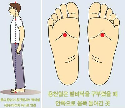 그러나 '제대로' 걸어야 효과를 본다. 이승헌 원장은 올바로 걷는 방법에 대해 다음과 같이 말했다. 일단, 몸의 무게중심을 ‘용천(湧泉)’에 둔다. 용천이란, 발바닥 중심의 움푹 들어간 곳으로 ‘기운이 샘솟는 곳’이라는 의미다. 편하게 서서 발바닥 중심에 힘을 주고 몸을 약 1도 정도 앞으로 기울인다. 또한 발바닥으로 몸의 무게를 느끼면 그 힘이 무릎과 고관절, 단전으로 올라와 몸의 중심이 잡히며, 가슴과 목에서 뇌로 연결돼 자극이 된다. 몸의 중심이 용천혈에서 백회혈(정수리)까지 하나가 된 느낌이 들어야 한다.