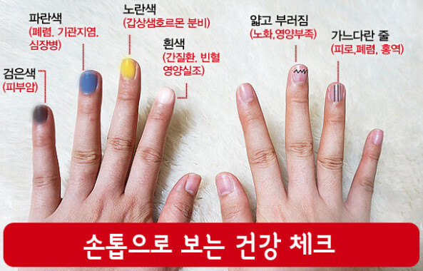 손톱은 우리 몸의 건강 상태를 확인할 수 있는 대표적인 부위다. 사람마다 조금씩 차이를 보일 수 있으나,