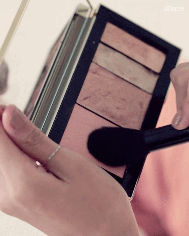 베이스로 바른 파운데이션보다 한 톤 어두운 컬러로 광대와 턱밑을 이어서 숫자 3을 그리며 음영을 준다. 광대와 턱의 선이 분명해 보인다. 샤넬의 팔레트 에쌍씨엘 #170 베이지 인텐스 9g 8만4천원.