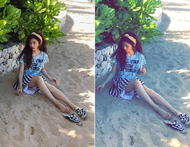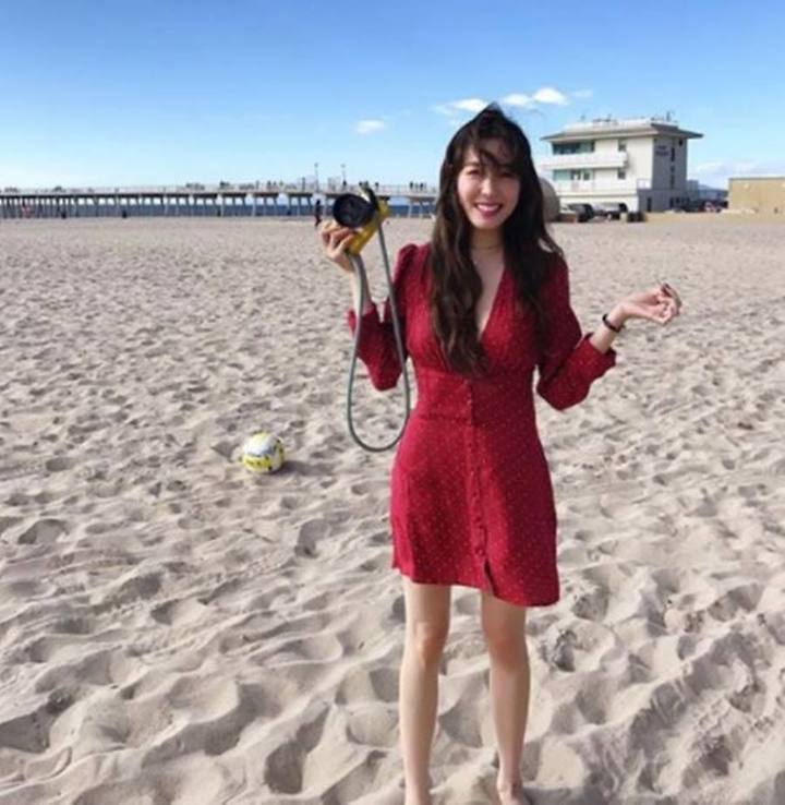 출처 : 정소민 인스타그램평소에는 선뜻 입기가 힘들었던 과감한 색감의 원피스도 바다에서는 사랑스럽기만 하다.
