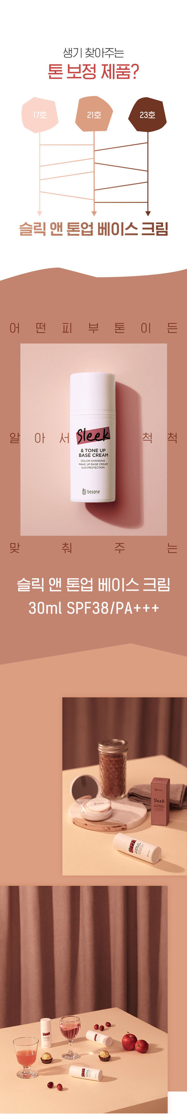 21호 or 23호? 세상엔 당신이 아는 것보다 무수히 많은 피부 톤이 존재한다. 베쏘네 슬릭 앤 톤업 베이스 크림은 호수로 표현되지 않는 다양한 피부색에 알아서 척척 톤을 맞춘다. 하나만 있어도 친구와 가족들 모두가 함께 사용할 수 있으니, 이 얼마나 좋은가! 톤 업 효과와 함께 각도에 따라 글로우한 피부의 엣지가 돋보이는 것은 덤.