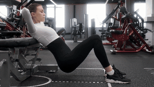 벤치나 소파에 상체를 기댄 상태로 등을 대고 눕고 발은 바닥에 두어 무릎을 굽힌 자세를 유지하세요. 엉덩이를 바닥 쪽으로 내리며 하체의 긴장을 유지합니다. 이후 엉덩이를 천장 방향으로 밀어 올리면서 엉덩이 근육에 강하게 힘을 주고 반복하세요.