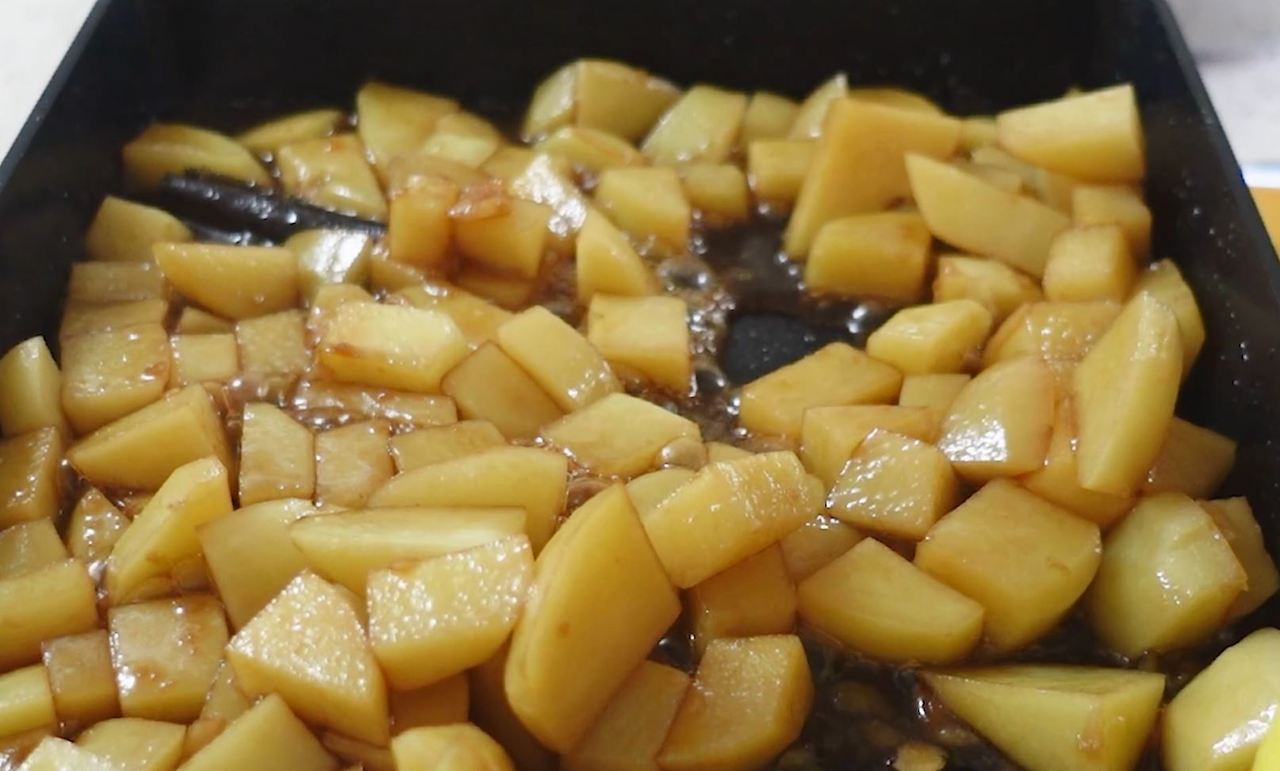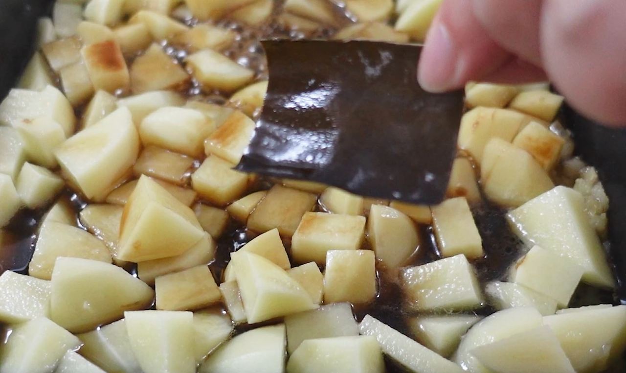 5️⃣ 양념이 다 졸아들면서 감자에 쏙 들어갔을 때 다시마를 빼고