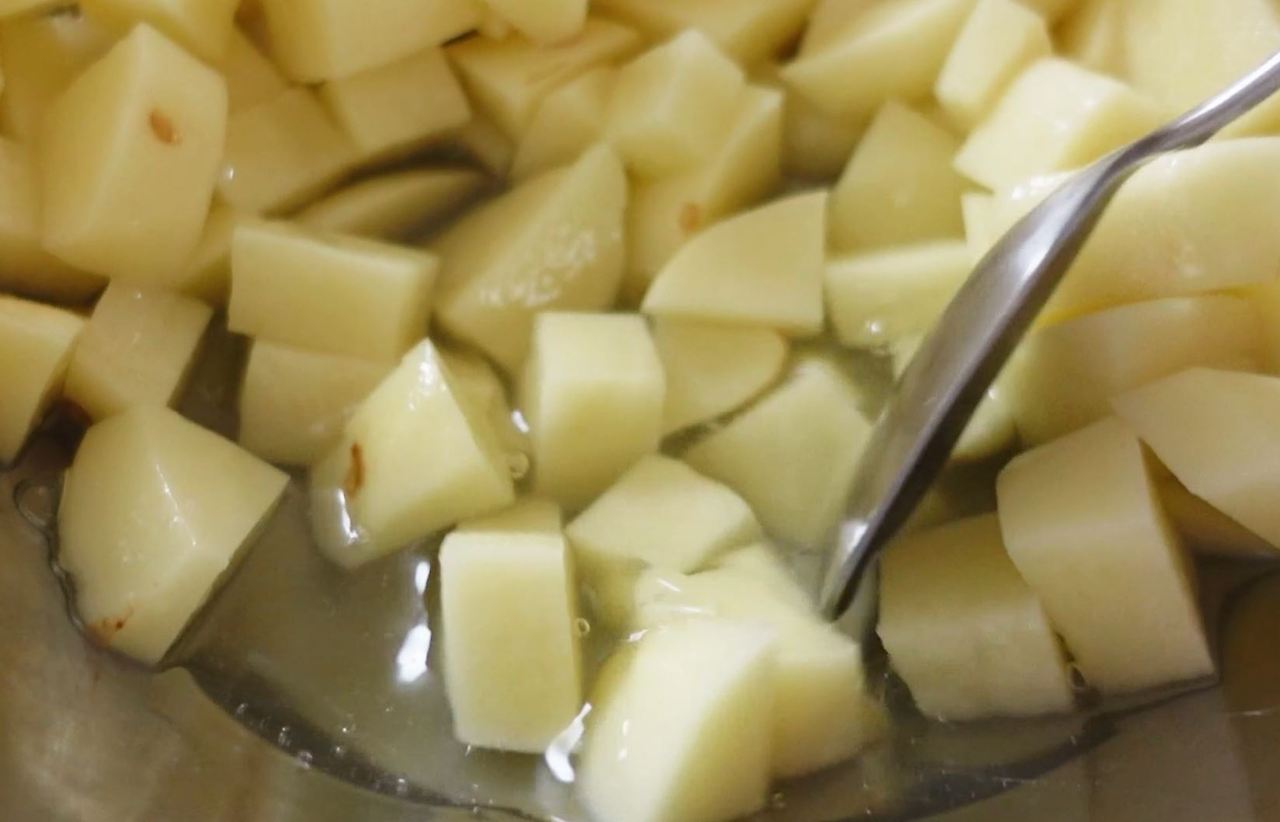 2️⃣ 찬물에 10분정도 담가 감자 전분기를 없애는데 이게 부서지지 않고 만드는