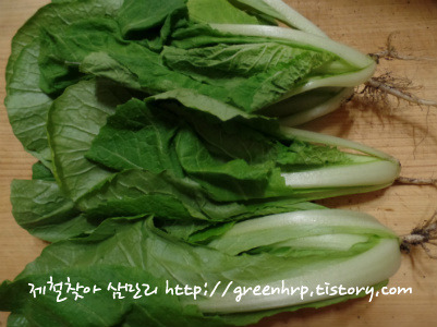 얼갈이는 뿌리부분을 잘라줍니다.