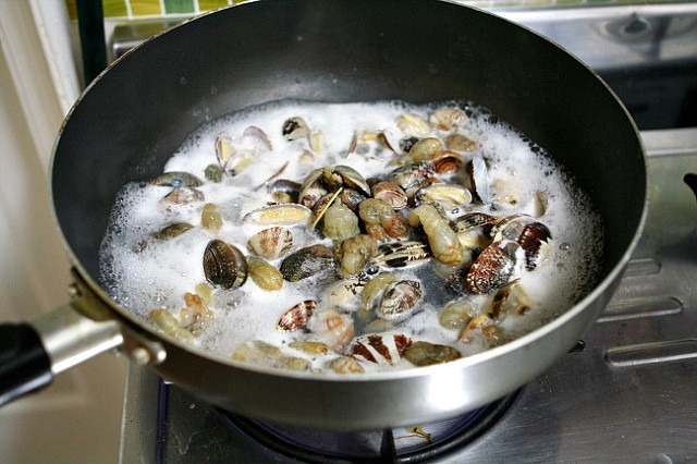 미더덕과 조개는 끓는 물에 살짝 데쳐 주세요.
