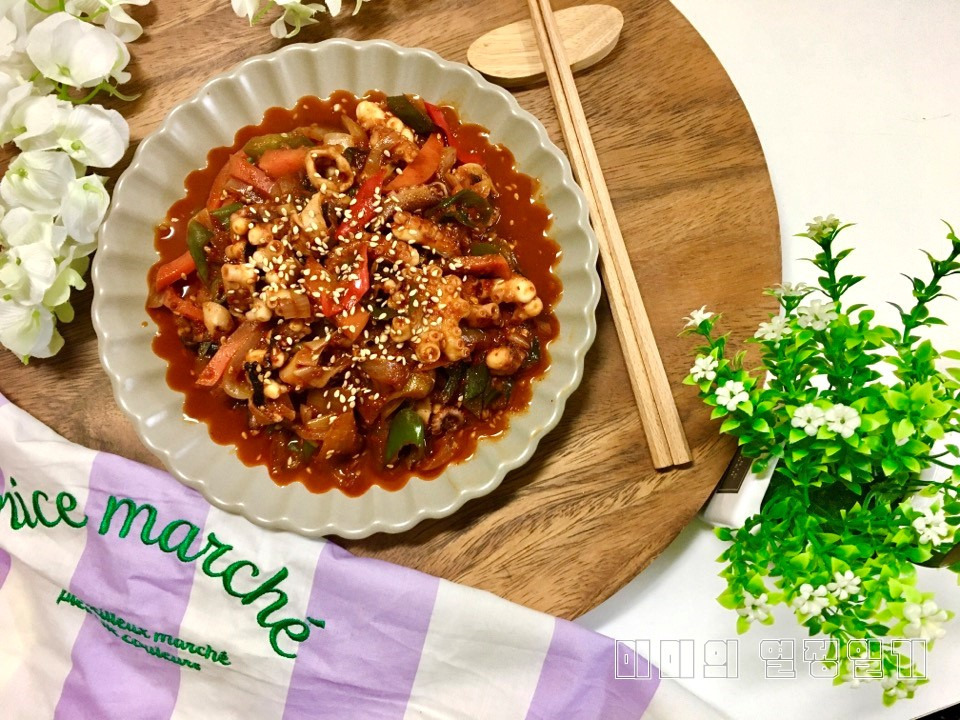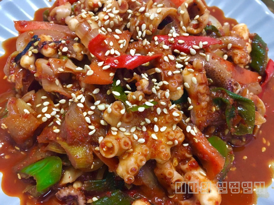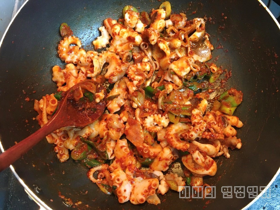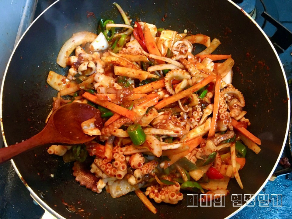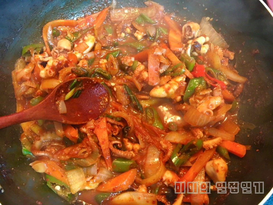 ▲ 매콤하고 맛있는 쭈꾸미볶음 완성입니다. 그냥 먹어도 맛있고, 밥에 비벼먹으면 더더욱 맛있습니다.^^