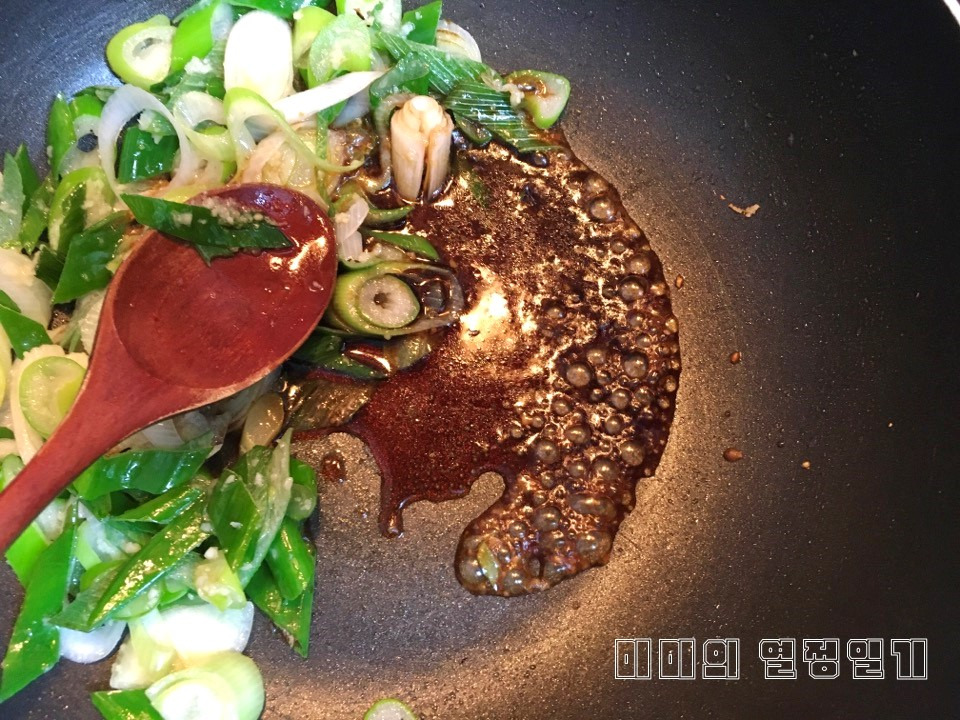 ▲ 간장과 고춧가루 넣을 때, 주의할 점은 금방 탈 수가 있기 때문에 잠시 불을 끄세요.