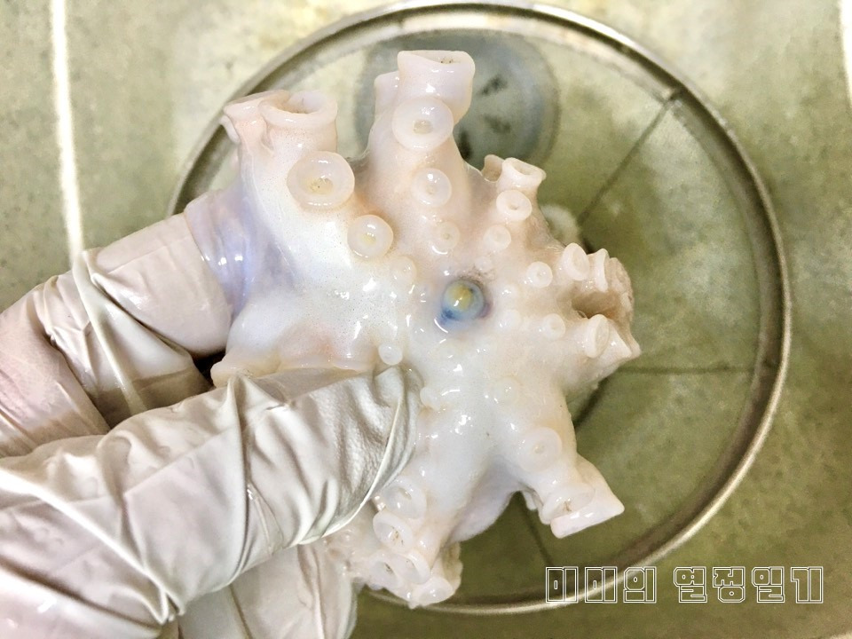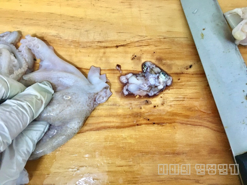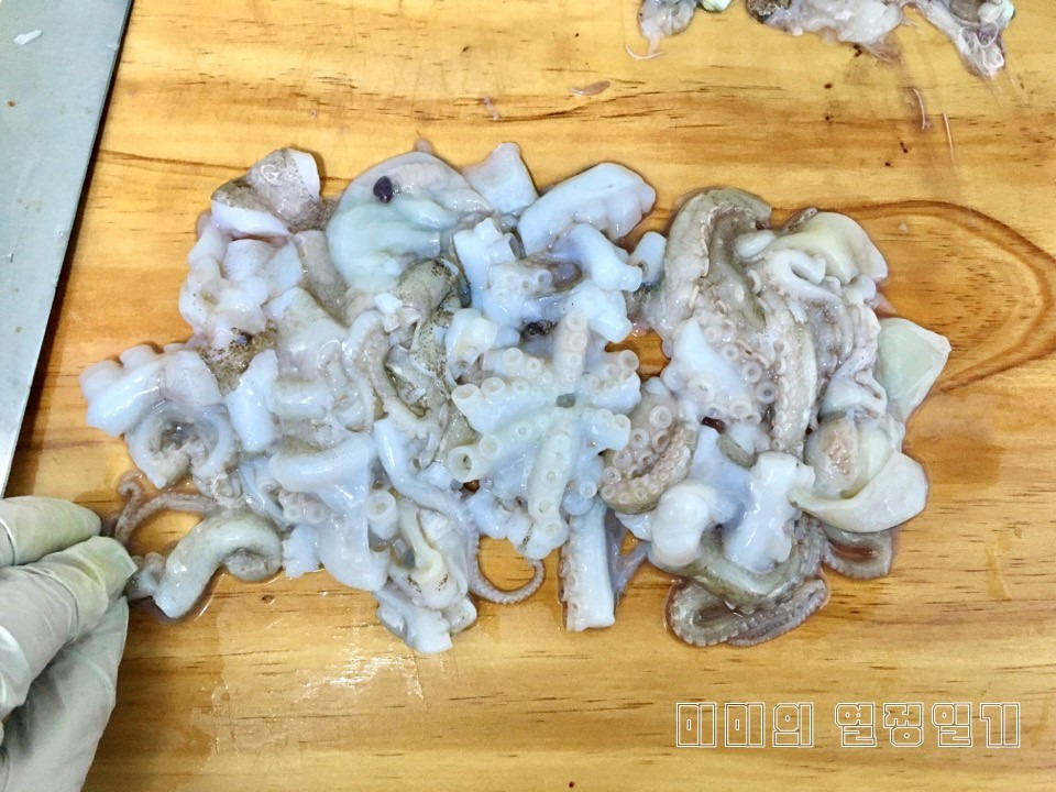 ▲ 적당히 손질을 끝내고, 주꾸미를 먹기 좋은 크기로 썰어서 준비합니다.