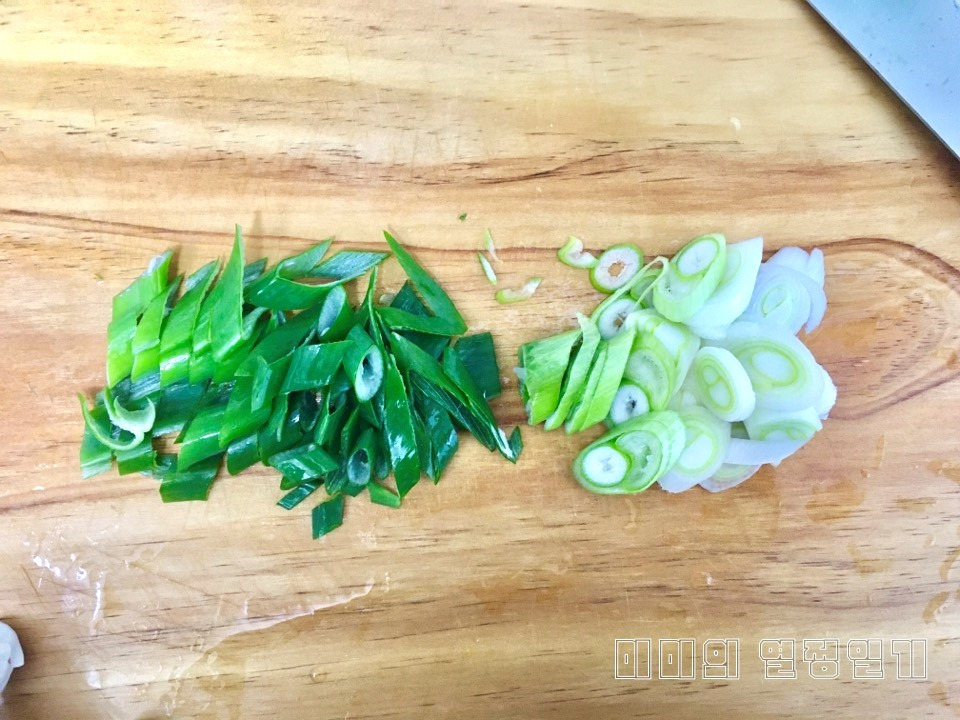▲ 야채 중에 가장 중요한 대파입니다. 어슷 썰기로 준비해 주세요.